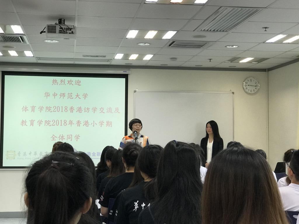 最后,华中师范大学教育学院带队老师马英讲话。马老师对香港金融管理学院的精心安排和热情接待表示感谢,并向全体学员介绍了华中师范大学与香港金融管理学院近十年来的交流与合作历程,特别是近几年两地在人才培养方面频繁的互通互访而结下的友谊和硕果。马英老师希望同学们能够珍惜学习机会,汲取知识、开拓视野,感受多元文化,成为传播内地历史与文化的使者。
