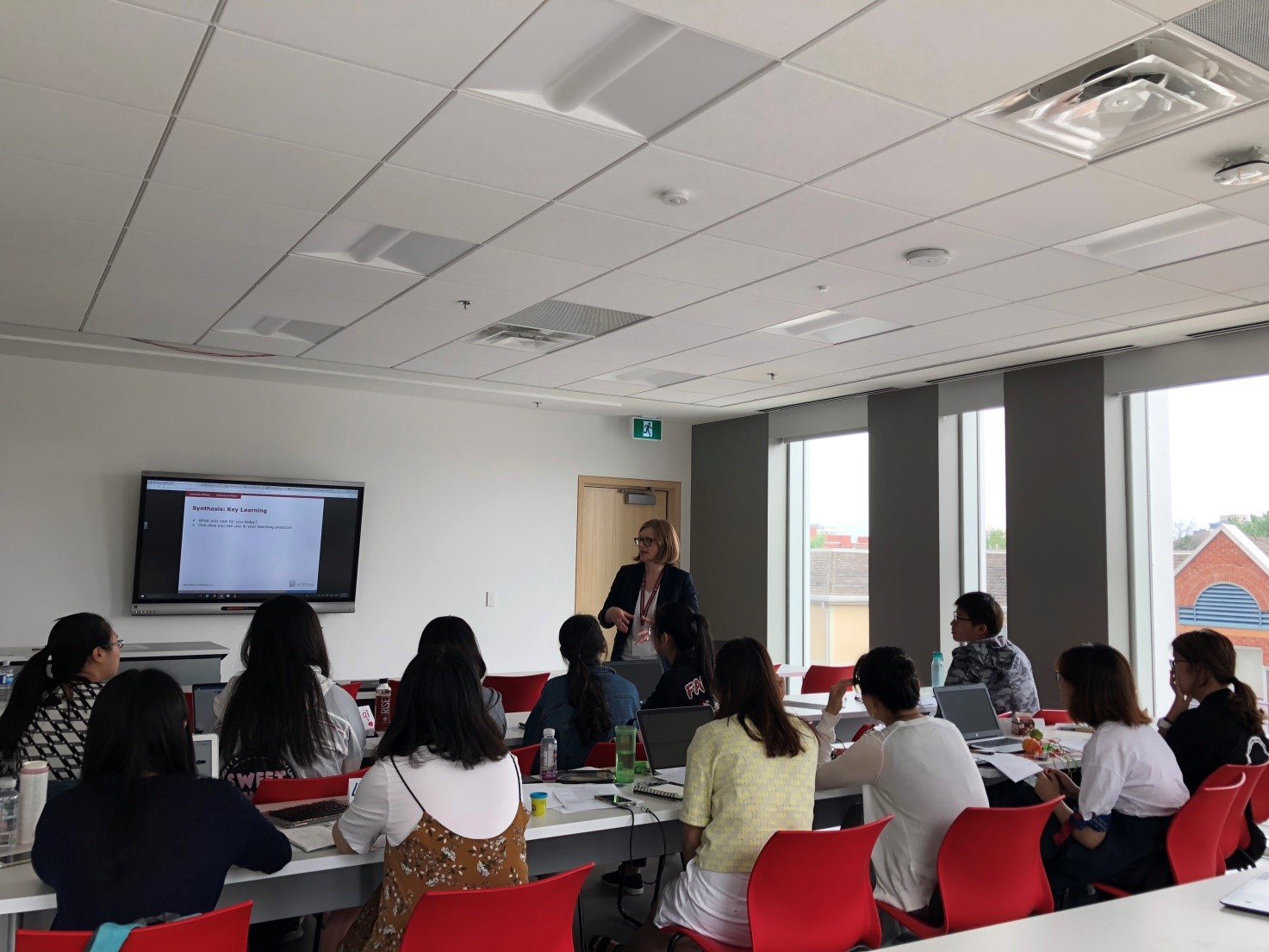 教育学院宣传中心讯(通讯员:邢思远 编辑:张萌)2018年8月3日华中师范大学暑期国际教育学习团队开始了第五天的学习行程。上午8:30助理教授Michelle Schira Hagerman为我院学生讲授了主题为“Technology,curriculum and assessment”的课程。课程伊始,Michelle利用三种技术了解了同学们关于课程与技术融合的已有知识。第一种技术即纸和笔,第二种技术是Padlet教学应用,第三种技术是backchannel chat软件,同学们亲自体验了这些技术之后,不仅对每种技术的优缺点进行了思考还对这些技术能否应用在教学中进行了探究。