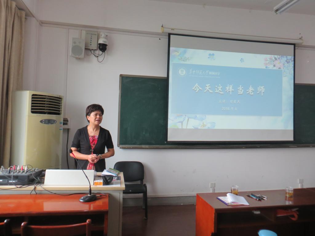 华中师范大学附属小学副校长甘爱民为教育学院师生做题为“今天这样当老师”的学术报告。报告伊始,甘爱民校长指出,“有好的教师才有好的教育”,并就如何成为一名优秀的教师,讲了自己的观点。首先,要巩固思想,提升自我。好的教师具备“三心”:爱心、信心、慧心。爱心是教师成长的功德之基,没有爱就没有教育,要求教师严而有格、爱而有方、教而有法;信心是教师成长的动力之源,激情来自信心,信心来自底蕴,激情和信心是教师尤其是班主任的基本素质;慧心是教师成长的思想之翼,也是做好教师的关键与核心,慧心是深厚的涵养,是好学深思。甘校长指出,教师要做好准备,迎接现代教育的挑战,不光让学生得满分,还要让学生满意,使学生满足;好的教师要不断学习以防止知识结构老化、教育方法僵化、知识能力弱化;要拥有开阔的人文视野,知识渊博,一专多能;还要有扎实的基本功底,练一手漂亮字、有一副好口才、写一笔好文章。