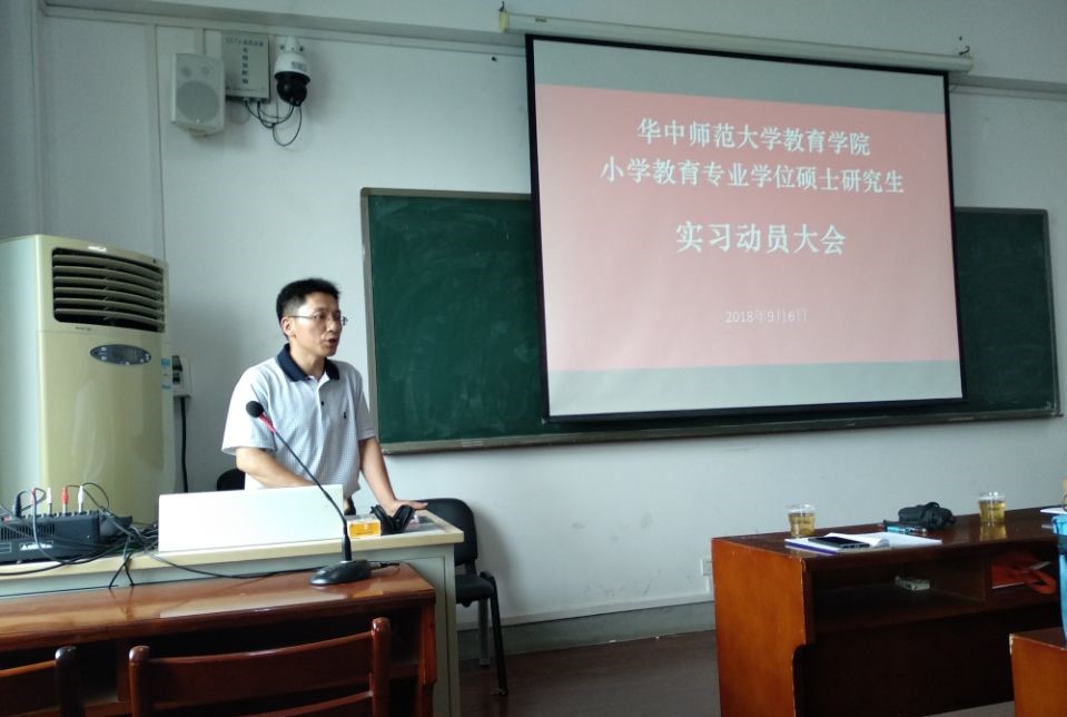 (通讯员:姚升红 编辑:孙丹)2018年9月6日下午14:30,教育学院2017级小学教育专业学位硕士研究生实习动员会在田家炳楼1007教室举行。学院申国昌副院长、罗祖兵教授、华中师范大学附属小学的甘爱民副校长以及2017级全体小学教育专业硕士研究生参加了此次活动。活动由罗祖兵教授组织与主持。