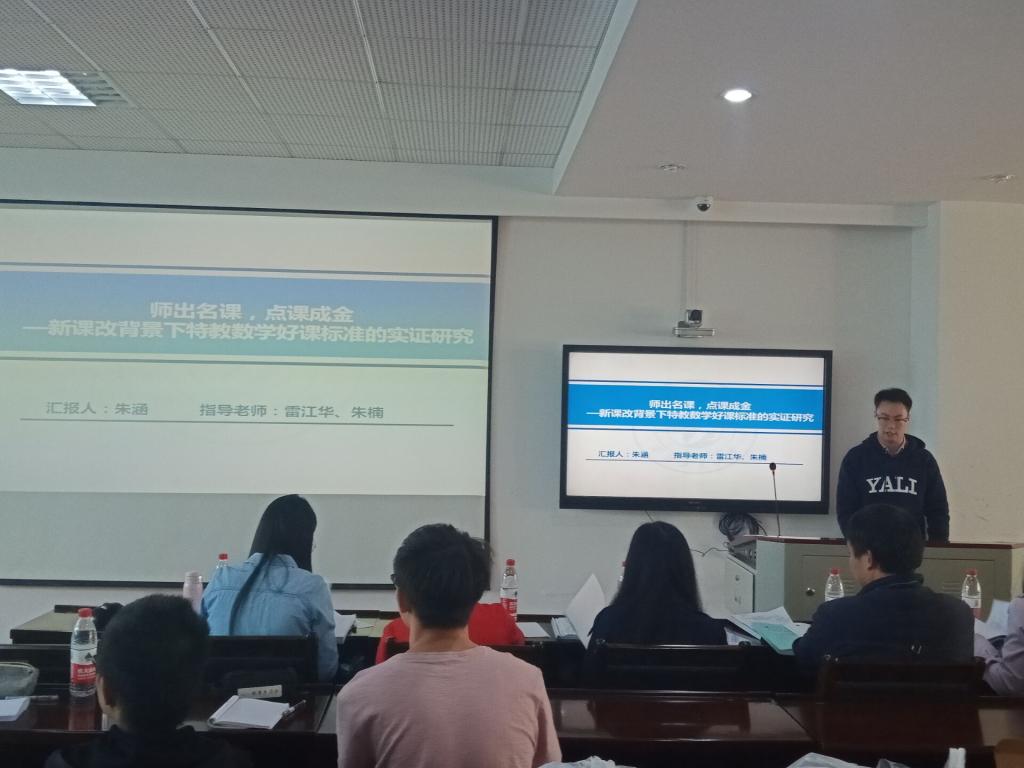 最后,“‘师出名课,点课成金’——新课改背景下特教数学好课标准的实证研究”由15级学生朱涵汇报,此项目指导老师为雷江华、朱楠。该团队致力于特殊教育数学课程的研究,所得成果得到权威性认可,具有较高的现实意义。李静书记针对此项目调研报告建议负责人要精简支撑材料,对相关评估标准进行解释,雷江华教授也对项目访谈对象提出改善意见。