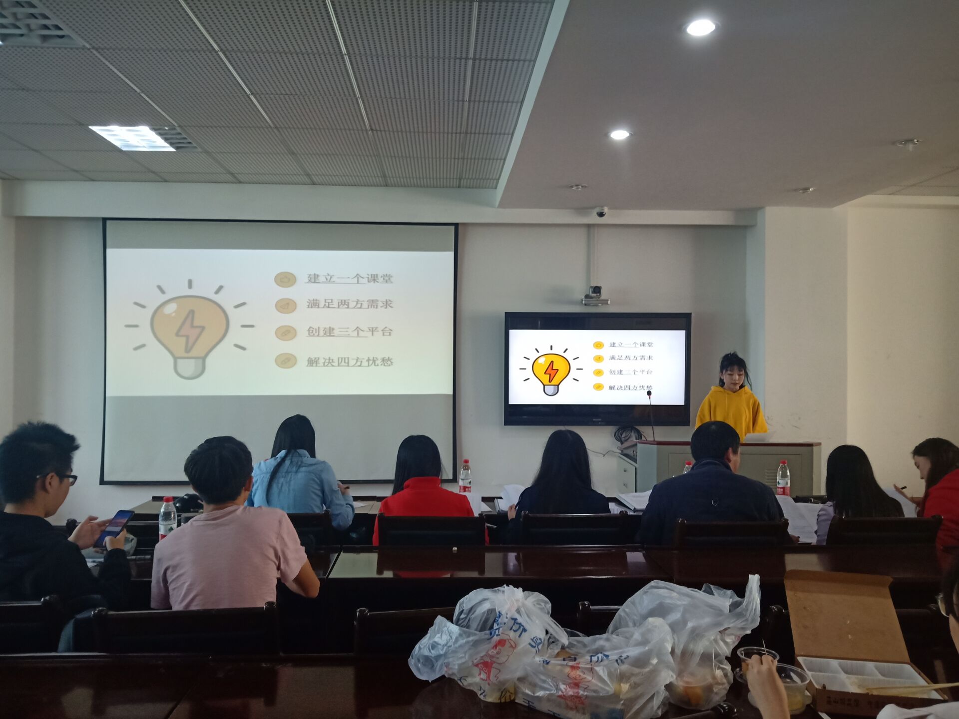 教育学院宣传中心讯(记者:经湛 李露 编辑:张萌)2018年10月17日中午,教育学院第8期师生午餐会暨挑战杯校赛终审决赛预答辩在田家炳楼601室开展。此次会议由教育学院团委书记王倩倩主持,特邀分党委副书记李静、雷江华教授、龚欣副教授、朱楠老师、刘丽伟老师担任评委。