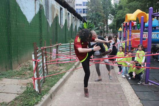 澳方师生在园长一行的带领下,观摩了大班幼儿的韵律操活动。园区的“体能大循环”区是此次观摩的重点。在此过程中,园区领导对各区域的分布、功能等进行了介绍,澳方师生认真聆听,不时和教师进行互动交流。部分澳方学生还亲身体验了该园的许多项目。随后,澳方师生还深入考察了育才幼儿园的环境创设、课程教学等。