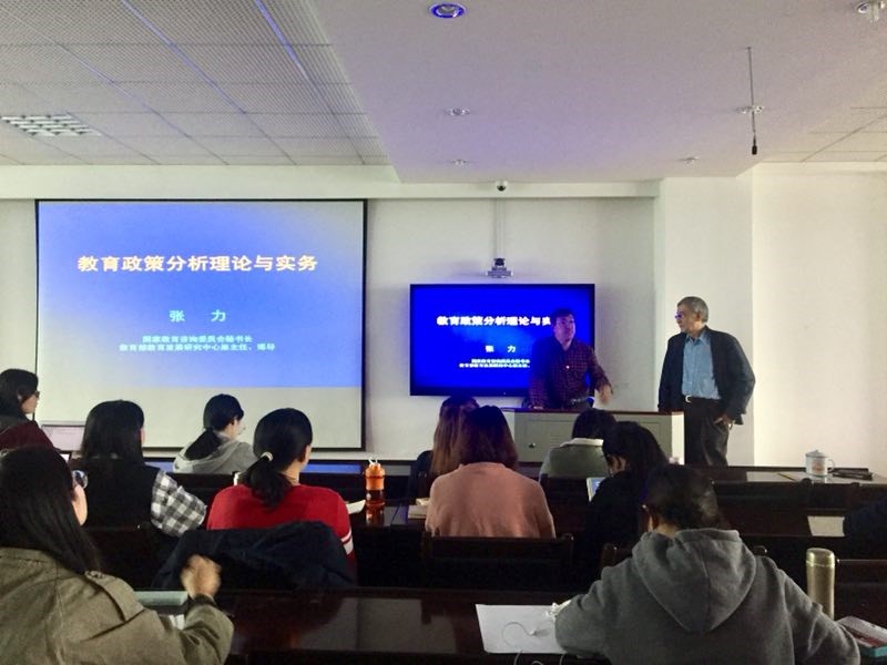 (通讯员:游高生 摄影:申慧宁 编辑:陈棋)2018年10月20日下午,华中师范大学教育学院“博导论坛”第26期在田家炳601教室成功举办。国家教育咨询委员会秘书长、教育部教育发展研究中心原主任、博士生导师、国家督学张力研究员应邀以“教育政策分析理论与实务”为题做了三个小时的学术报告。论坛由教育学院副院长、博士生导师申国昌教授主持。
