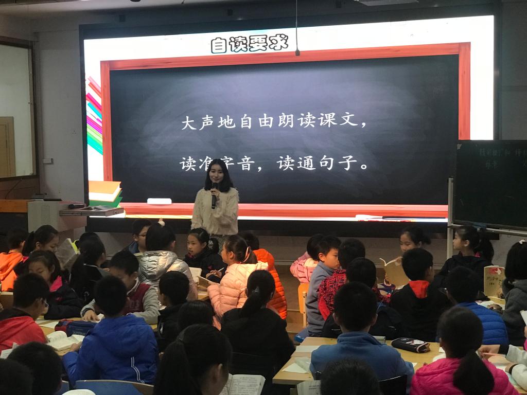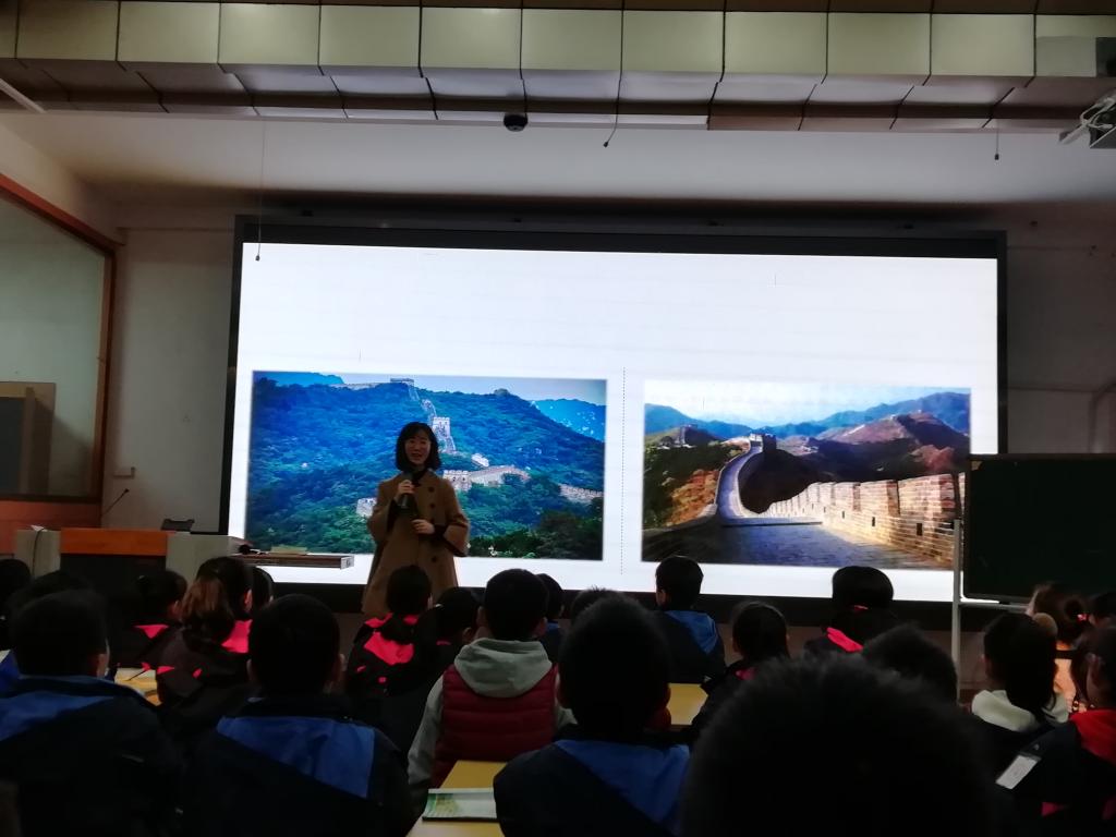 此次实习汇报课有两节。第一节是由本科实习生卢宇峥同学带来的四年级语文课文《长城》。开课伊始,卢宇峥用两张长城图片来激发学生的学习兴趣,引出这节课的课题。在接下来的教学过程中,她不断地用提问来引引发学生思考,通过各种不同形式的读来让学生体会长城的雄伟壮观。最后,卢宇峥同学用“我是小导游”的活动,让学生学习运用,使得整个课堂得以升华。