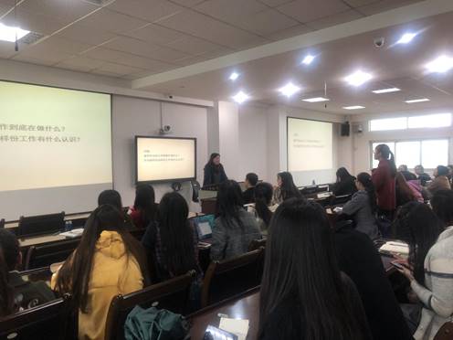 王倩倩老师的讲述通俗易懂、深入浅出、风趣幽默,她分享了自己立志成为一名能够对学生产生影响的辅导员的心路历程,并给大家介绍了应聘辅导员的实用经验,主要包括以下四个方面:(1)精准定位。思考自己是否真的喜欢辅导员这个职业;明确自己想去的区域及学校的类别。(2)自我提升。一是要注重锤炼自我,达到应聘辅导员的基本条件和隐性条件;二是做好笔试和面试的备考准备,提醒大家多学习《普通高等学校辅导员队伍建设规定》、《辅导员职业能力标准》、《普通高等学校学生管理规定》等文件及十九大相关内容和一些时政热点。(3)广结人脉。老老实实做人,踏踏实实做事,通过自己的辅导员、导师、同学、朋友等人脉,获取推荐机会和鼓励支持。(4)乐观自信。失败和挫折人人都会有,不要自我否定、自我怀疑,要迎难而上、勇往直前。