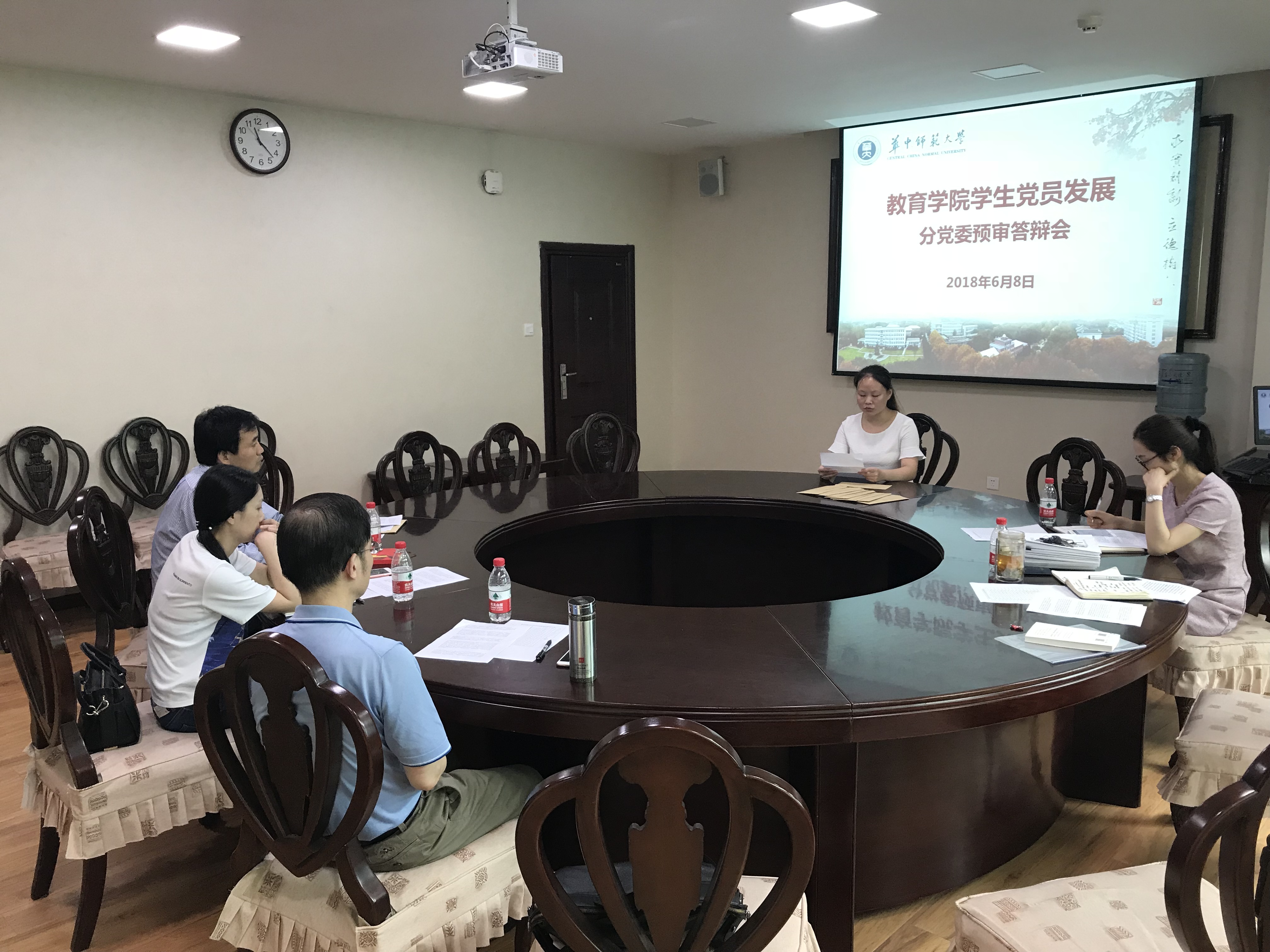 2018年6月8日上午和下午,我院在田家炳403教室分别进行了本科生和研究生学生党员发展分党委预审答辩工作,我院分党委委员卢治平、李静、陈佑清、但武刚、雷江华出席,辅导员马英、王诗薇,党务干事覃娟等参加。