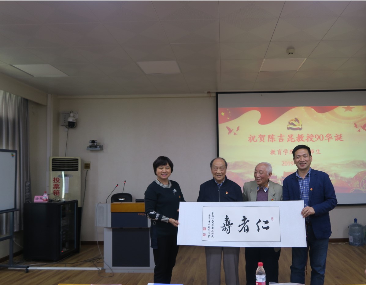 恰逢党员陈吉昆教授90华诞,退休党员刘芹茂教授为陈吉昆教授送上生日贺礼,党委书记李玲代表全体师生祝贺陈吉昆教授九十岁寿辰,祝福退休教师们福如东海长流水,寿比南山不老松。