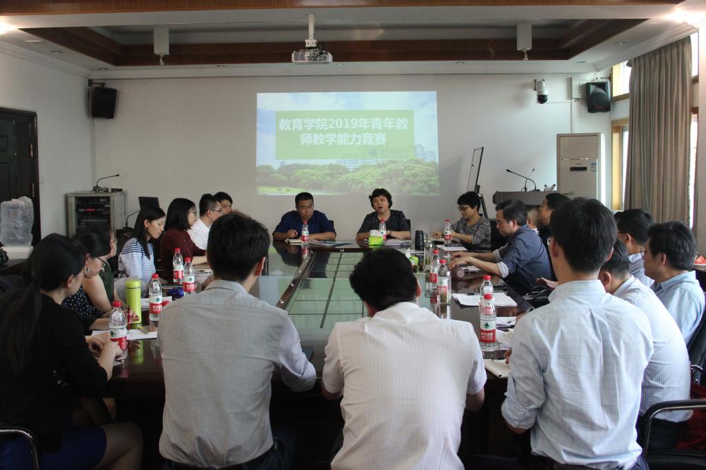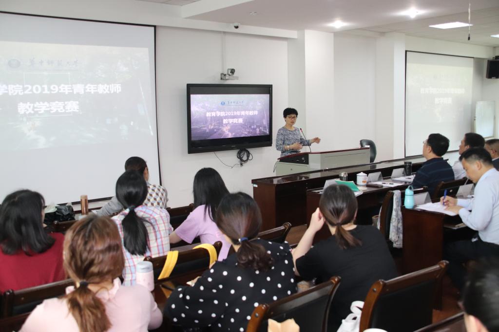 教育学院宣传中心讯(通讯员:钱隽至 李琪琪 摄影:张莉 张萌 编辑:王建梁 张萌)5月11日上午,由我院工会、教学办主办的2019年青年教师教学竞赛在田家炳教育大楼601室举行,校工会主席周东明莅临指导,我院党委书记李玲、院长雷万鹏、副院长蔡迎旗、副院长申国昌、“明德教师奖”得主余子侠、校院两级督导员余学峰、湖北省名师工作室主持人陈佑清、特殊教育系主任雷江华、2016年湖北省第五届青年教师教学竞赛一等奖获得者田友谊等担任评委,12名青年教师参赛,我院工会主席王建梁主持此次竞赛。