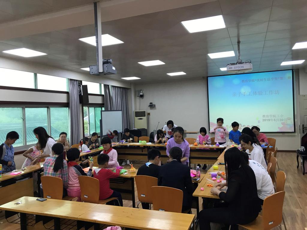 (通讯员:曲曼鑫 编辑:陈棋)为了庆祝“六一”儿童节的到来,让广大教职工体验亲子快乐时光,我院工会于2019年5月30日下午4点半在田家炳502教室举办了“美好生活学堂”第三期“亲子手工体验工作坊”活动,我院十多名教职工带领小朋友共同参加。