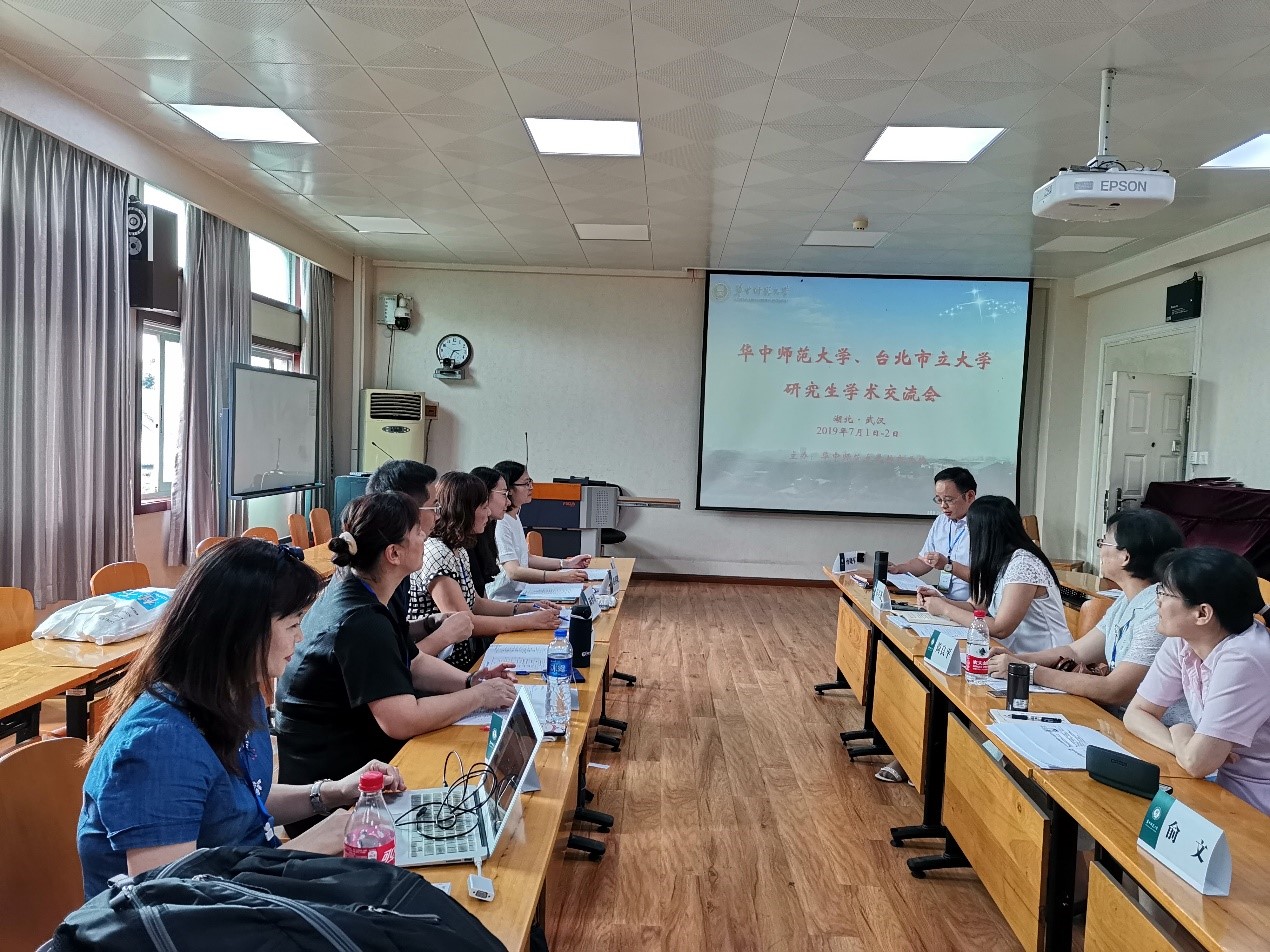 教育学院宣传中心讯(通讯员 陈棋 摄影 张萌 陈棋 编辑 陈棋)2019年7月1日至2日,由我院主办的华中师范大学、台北市立大学研究生学术交流会在我校逸夫国际会议中心二楼报告厅举行。参加本次学术交流会的校外嘉宾有台北市立大学简良平教授和但昭伟教授、明道大学的助理教授江姮姬,我校研究生院副院长叶飞,教育学院与心理学院的主要领导以及两院10余位专家学者,与来自海峡两岸的30余位研究生齐聚一堂,开展学术交流活动。
