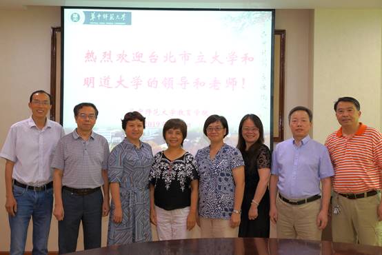 (通讯员:王健;摄影:王健;编辑:吴佳妮)2019年7月3日下午3点,台北市立大学简良平教授和明道大学助理教授江姮姬一行3人来我院调研座谈,院党委书记李玲、课程与教学研究所所长陈佑清教授、高等教育研究所所长欧阳光华教授,教师代表毛齐明副教授,以及对外合作办公室主任王健参加座谈会,双方就后期合作事宜进行了交流。