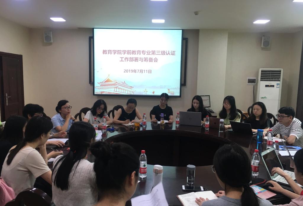 教育学院宣传中心讯(通讯员 王佳悦 编辑 陈棋)2019年7月11日下午3点,教育学院学前专业三级认证工作部署与筹备会于田家炳楼403会议室顺利召开。会议由副院长蔡迎旗主持,党委副书记黄玉新、办公室主任覃娟、本科教学秘书夏儒斐、学前专业教师王雯、王䴖、王任梅、李卉、刘丽伟等多名教师及研究生参加了本次会议。