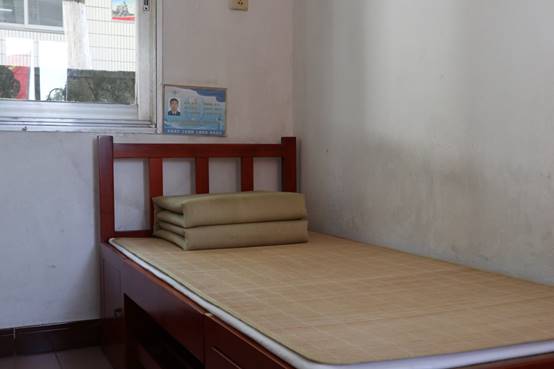 刚一进入,同学们自动整理成队列进入雷达站。活动伊始,指导员张博向大家讲解了南望山雷达站的发展历史,并带领大家参观了雷达兵的生活和休闲环境。在训练室中,有序地摆放着各种健身器械,同时墙壁四周悬挂着军人们自己亲手写下的书法作品。在电视房里不仅有武装军人思想的电视机,也有各种丰富军人休闲生活的音乐器具。宿舍里一米五宽的床铺上是一个个“豆腐块”,荣誉室里有整柜的奖章和牌匾。