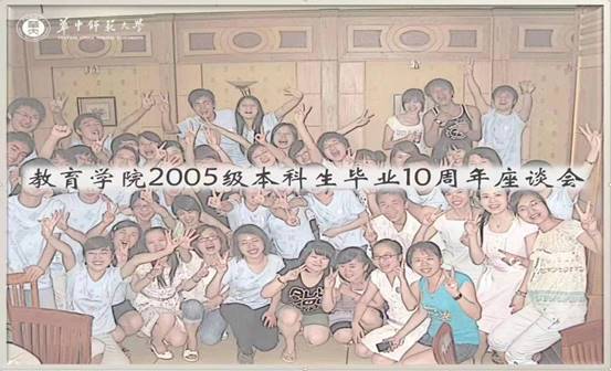 在教师发言环节,应邀参会的教师对返校校友表示热烈的欢迎。2005级本科生是教育学院独立成院后的首届学生,很多老师表示对这一届学生的印象非常深刻。王雯副教授、董英副教授首先动情地回忆了与2005级同学们相识、相处的感人往事;但武刚教授接着鼓励同学们多聚会,要重视最纯粹的同学情谊,也欢迎同学们常回母校看看;孙民从副教授、雷江华教授、王健老师、蔡迎旗副院长也先后对同学们的到来表示热烈地欢迎,对同学们的未来人生饱含祝福与期待;2005级本科学生的辅导员马英副书记由于工作原因未能到场,她特意录制了视频寄语大家;周东明教授最后总结,他评价这次同学聚会不容易、不简单,并向校友们简要介绍了学校未来的发展蓝图。