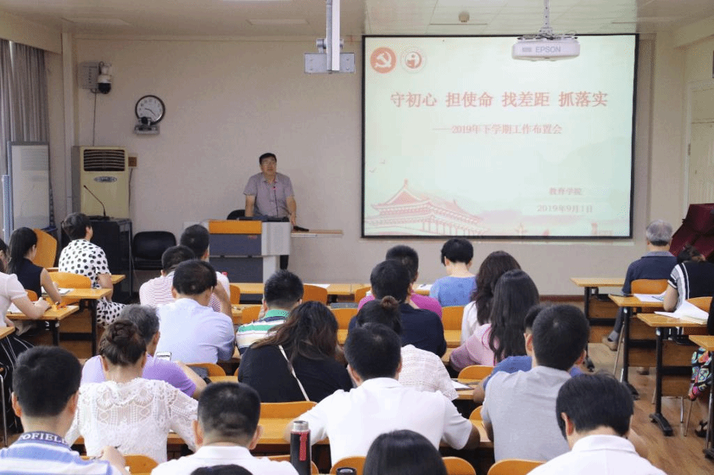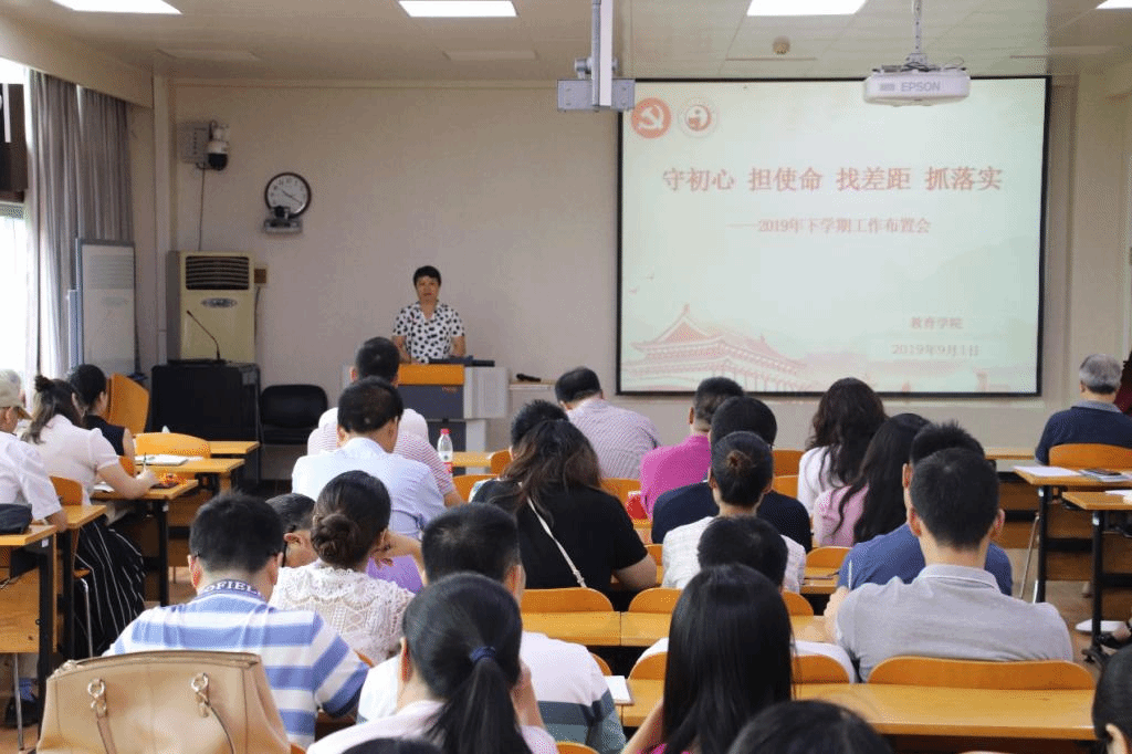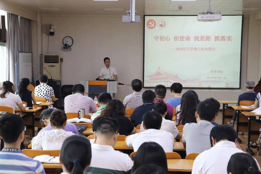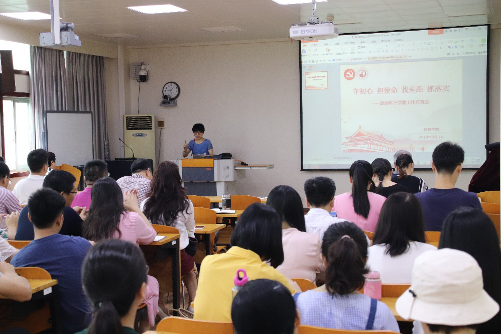 教育学院宣传中心讯(通讯员 钟嘉欣 摄影 张萌 编辑 陈棋)2019年9月1日上午,我院于田家炳502教室召开“守初心、担使命、找差距、保落实”新学期工作布置会。会议由党委书记李玲主持。