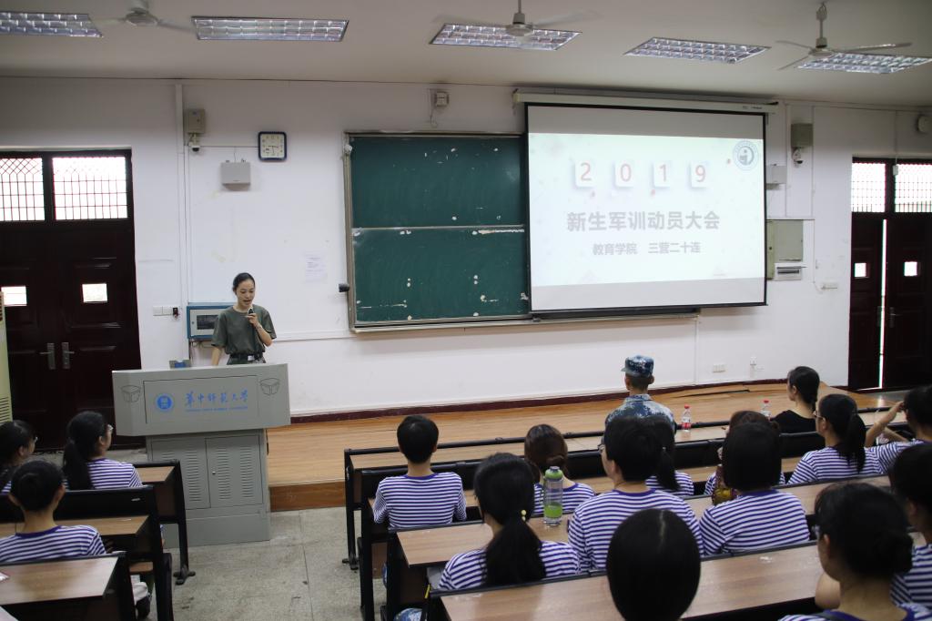教育学院宣传中心讯(记者 曾滨懿 编辑 张萌)9月1日下午2点许,教育学院2019级新生军训动员大会在七号教学楼7202室顺利举行,教育学院党委副书记黄玉新、2019级新生辅导员王诗薇、王姝尹、教官张胜东出席活动,校艺术团合唱团副团长王璟晨与全体2019级新生参加此次活动,王诗薇主持动员大会。