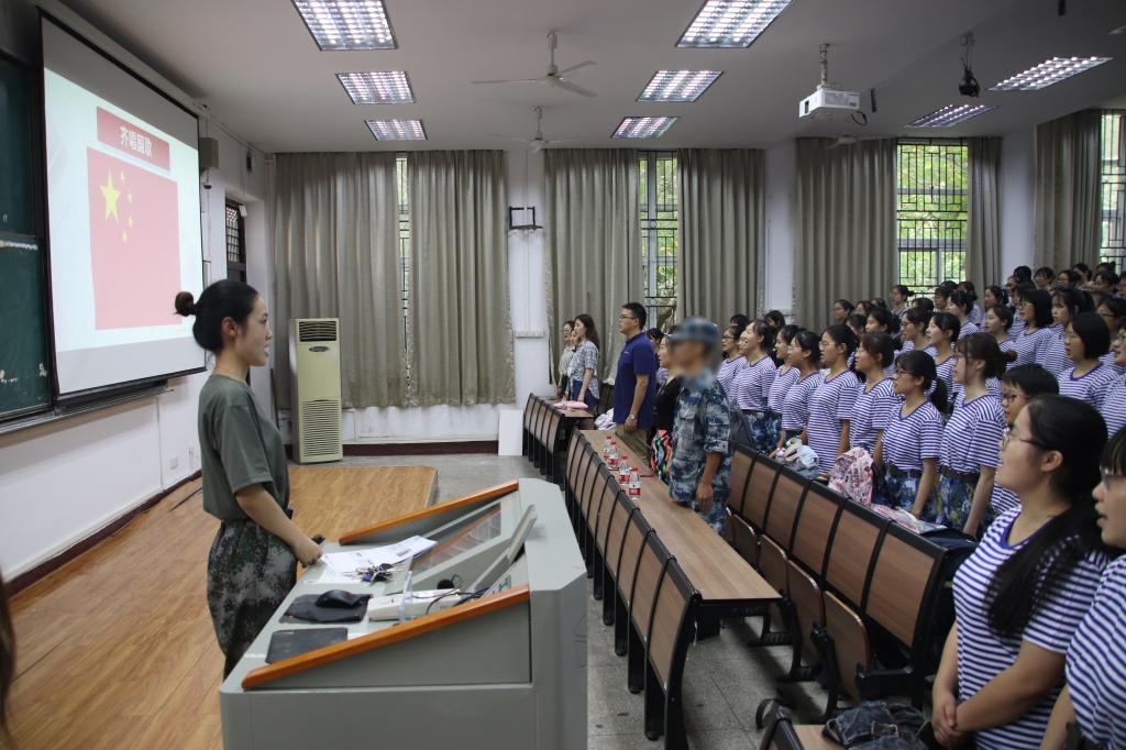 在庄严嘹亮的国歌声中,教育学院2019级(华中师范大学2019年军训团二十连)军训动员大会正式拉开序幕。