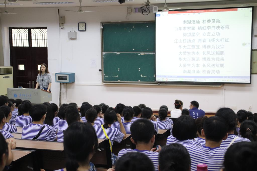 动员大会后,王璟晨还带领各位新生学习华师校歌,帮助新生了解校园文化。