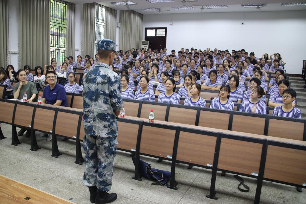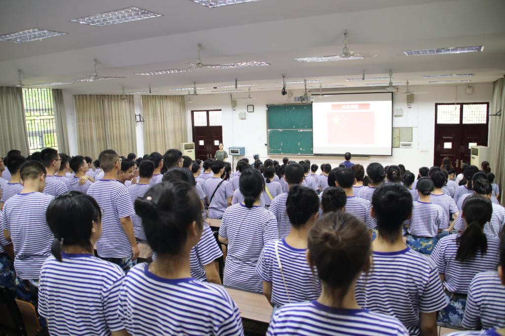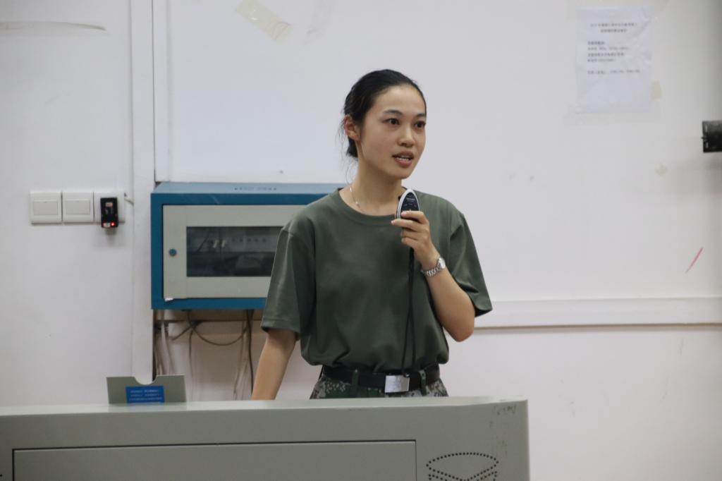王诗薇则从总体安排、管理制度、考核制度、理论学习安排和军训期间活动安排等五个方面系统地梳理了2019年军训各项事宜。她表示,希望同学们能发挥二十连的优良传统,在半军事化管理下听从指挥、严守纪律,遵守学校各项规范,为今后四年的生活学习打下坚实的基础。