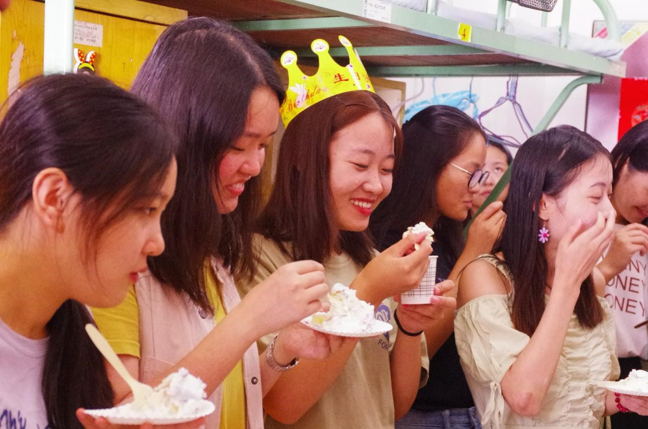 据悉,在开学前夕,学院领导了解到几位新同学在将在近期过生日,当即决定要给大家一个惊喜和一个难忘的生日。在此次走访看望活动中,李玲书记特意为同学们准备了“网红”生日蛋糕,并亲自给各位“小寿星”切蛋糕、带礼冠、唱生日歌。同学们在惊喜之余,更是感动万分。小小的宿舍温馨满满,大家畅所欲言,其乐融融。