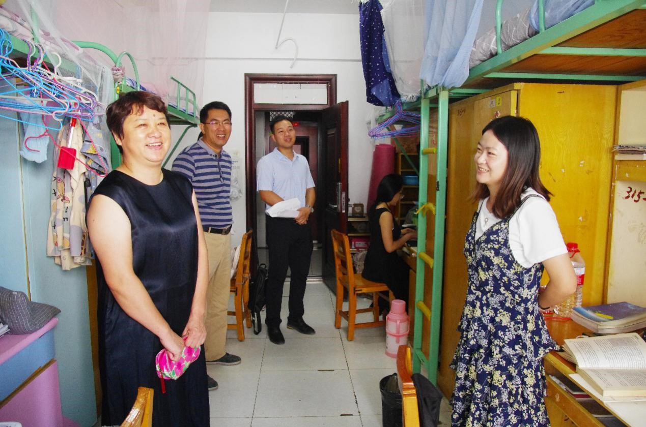 在南湖十二栋学生宿舍,李玲书记首先对大家的到来表示了热烈欢迎,并关切的询问大家的住宿、生活、专业、学习等情况。随后她说道,本科生活和研究生生活有所不同,希望同学们以忠诚博雅朴实刚毅的华师精神用更加昂扬的姿态迎接未来的学习、生活和挑战,学院永远是你们的家。