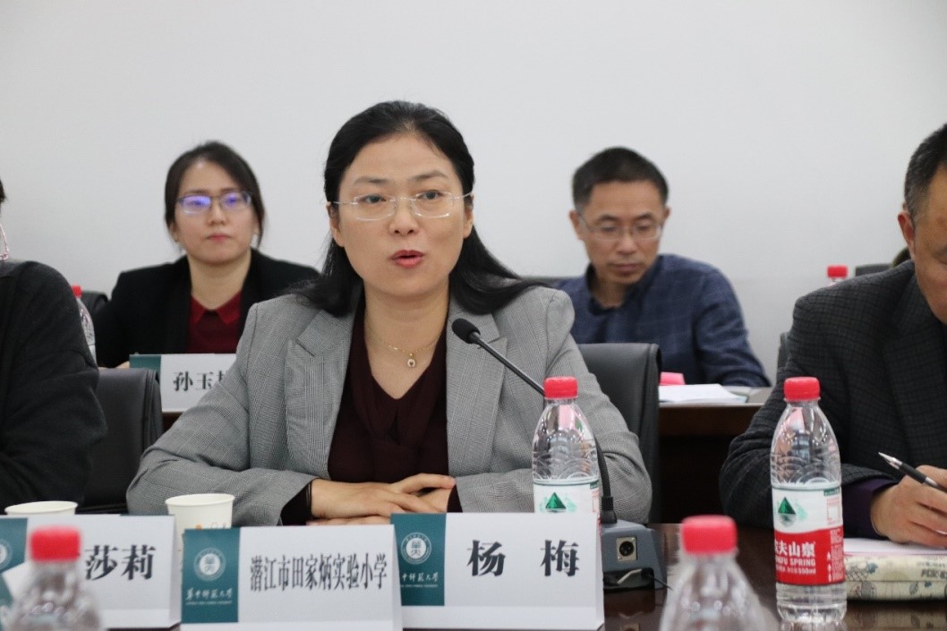 潜江市田家炳实验小学校长杨梅追念了田老先生三次到访潜江田校的历史,田老朴实的作风深深影响着田校人。为了传承田家炳先生的精神,发展教育,杨校长就潜江市田家炳实验小学师资力量的培养作了详细的论说,并企盼与我校建立密切且长久深入的联系。