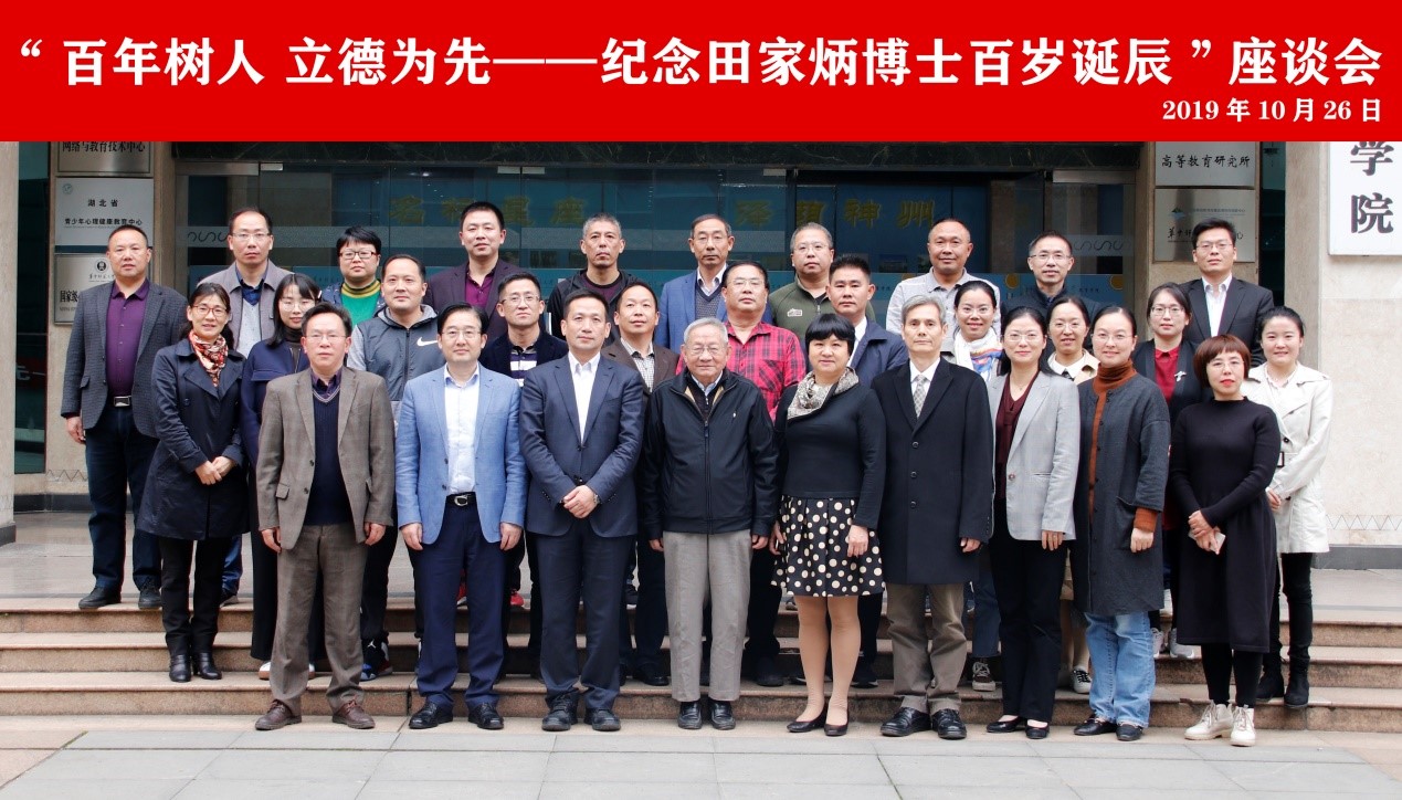 教育学院宣传中心讯(记者 周可 陈棋 编辑 张萌)为了践行习近平总书记“扎根中国大地办教育”的指示,教育学院以“不忘初心,牢记使命”主题教育为契机,促进领学领研举措落地,在田家炳先生诞辰一百周年之际,2019年10月26日下午,在田家炳教育学院624会议室举办了“百年树人、立德为先——纪念田家炳博士百岁诞辰”座谈会,旨在追忆田老先生,建立田校联盟,推动田校内涵建设和高质量发展。出席本次会议的有华中师范大学原校长王庆生、校港澳台办主任高卓献,校友工作与合作发展办主任王志彬,教育学院党委书记李玲、院长雷万鹏,我院杜时忠教授、孙玉梅副教授、张建博士、白颖颖博士以及来自湖北省各地级市田家炳中小学校的22名代表。座谈会由李玲、雷万鹏分别主持。