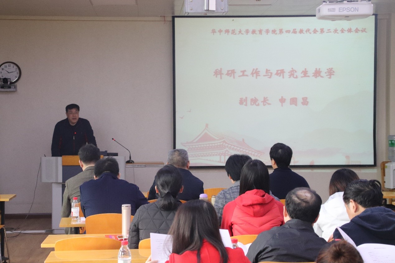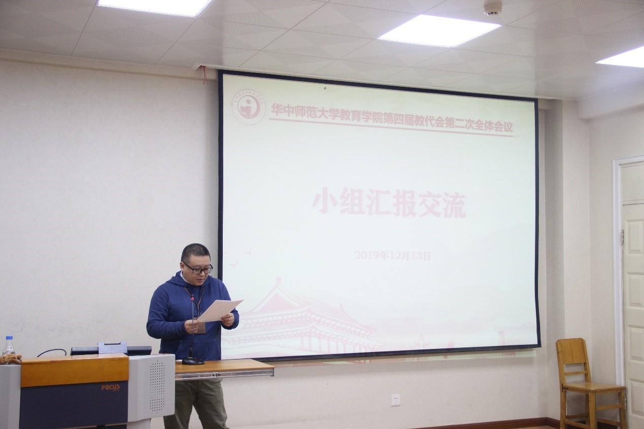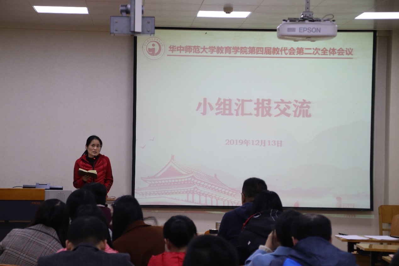 教育学院宣传中心讯(记者 焦工宣等 编辑 张萌)2019年11月24日上午,教育学院第四届教代会第二次全体会议在田家炳楼502教室举行。此次教代会以十九届四中全会精神为指导,结合学院实际,以“守初心担使命:不断推进学院治理体系和治理能力现代化”为主题,学院党政领导、全体教职工参加了会议,会议由副书记张扬主持。此次教代会在形式上进行了创新,整个会议分为两个阶段,11月24日上午的第一阶段会议进行相关工作报告,期间由小组长主持讨论,广泛听取、收集职工意见,于12月13日下午进行大会交流发言。