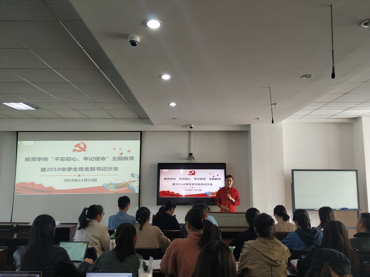 教育学院宣传中心讯(通讯员 卢宇峥 编辑 张莉)11月14日中午12点,教育学院“不忘初心、牢记使命”主题教育暨2019年学生党支部书记沙龙于田家炳601会议室召开。本次活动由教育学院党务干事王诗薇主持,全体党支部书记参加。