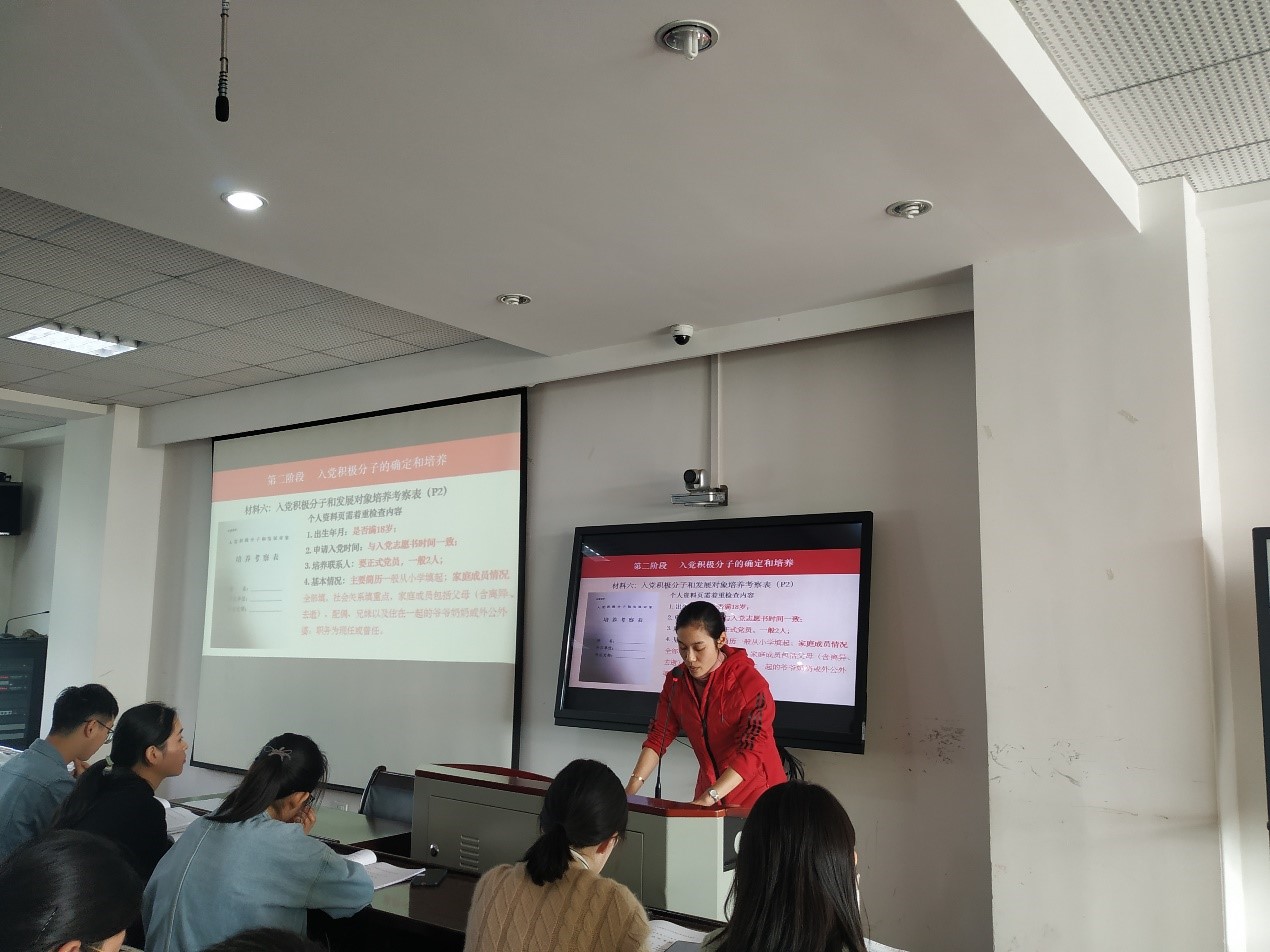 接着,王诗薇老师与党支部书记就《教育学院党建工作制度汇编》(讨论稿)、党支部考核方法、主题党日活动等内容进行了详细讲解与深入探讨。其中,她重点介绍了中国共产党发展党员的流程及要注意的问题和交纳党费、转接党组织关系要注意的问题,并针对在场学生党支部书记工作上的相关疑问进行了解答,提出了许多富有成效的工作建议。