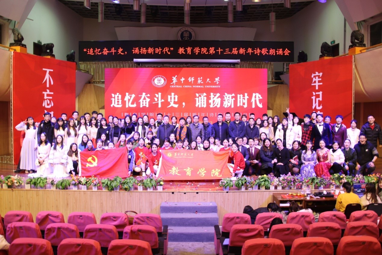 教育学院宣传中心讯(记者 张静等 编辑 张萌)12月9日晚6时许,教育学院第十三届“追忆奋斗史,诵扬新时代”新年诗歌朗诵会暨“不忘初心、牢记使命”专题晚会,在华中师范大学音乐厅隆重举行。教育学院党政班子、教育学院教师代表、各兄弟学院研究生会代表、研究生及本科生代表等到场观看本届新年诗歌朗诵会,本次活动还特别邀请了社会学院党委书记卢治平莅临观看。