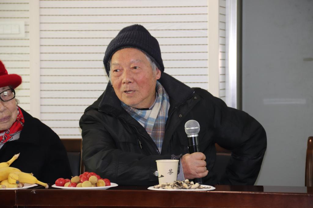 在自由交流中,退休教师杨再隋教授回忆了在桂子山65年的美好时光,他表示要有“人老但思想不老”,“脊椎可能弯曲,但是精神没有弯曲”的信念,并希望老师们沐浴在桂子山的风景中,活得自在点,活得舒坦点。现场杨再隋即兴作诗一首:“扬鞭缓奋蹄,驻足望蓝天,多情应笑我,拈须笑颜开”。