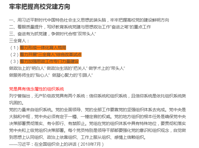 教育学院宣传中心讯(记者 华巍等 编辑 张莉)为深入学习贯彻习近平新时代中国特色社会主义思想,进一步加强和完善学生党支部的建设,切实提升学生党支部书记的履职能力和学生党支部的政治功能,根据《中国共产党支部工作条例(试行)》《2019—2023年全国党员教育培训工作规划》的规定,华中师范大学校党委于近期举办了2020年学生党支部书记集中培训班。培训期间,教育学院党委各支部书记利用多渠道多途径认真学习,努力提升个人能力。