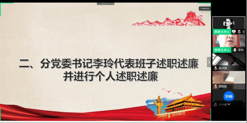 接着,我院领导班子成员依次进行了个人的述职述廉。分党委书记李玲从履行主体责任、深入推进全面从严治党、牢牢掌握意识形态工作领导权、抓好学院文化建设四个方面汇报了2019年度的工作情况,对存在问题与不足进行了深入剖析,并从进一步完善党建工作责任制、创新引领党建、抢占意识形态阵地、加强作风建设等方面提出改进措施。