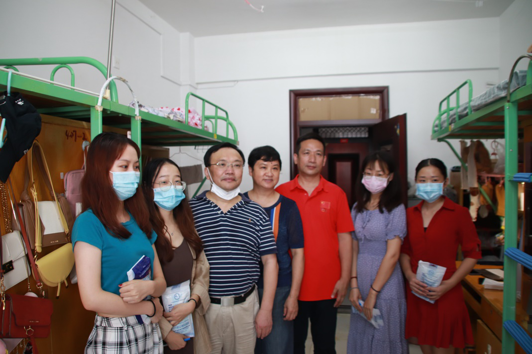 上午,夏立新副校长一行前往南湖12栋学生宿舍,走访看望了我院的研究生。在407寝室,夏立新首先代表学校欢迎桂子山的主人归来,并亲手送上学校为大家准备的口罩、温度计等防疫物品。走访中,夏立新详细介绍了学校关于复学和宿舍搬迁的整体工作安排和远景规划,他希望作为华师学子要正确面对负面消息,传递正能量,振奋精神,奋发图强,一起把我们自己的事做好、办好。最后,他强调,在疫情防控上要继续提高警惕,要按照应急预案及时向研究生导师、辅导员老师报告。
