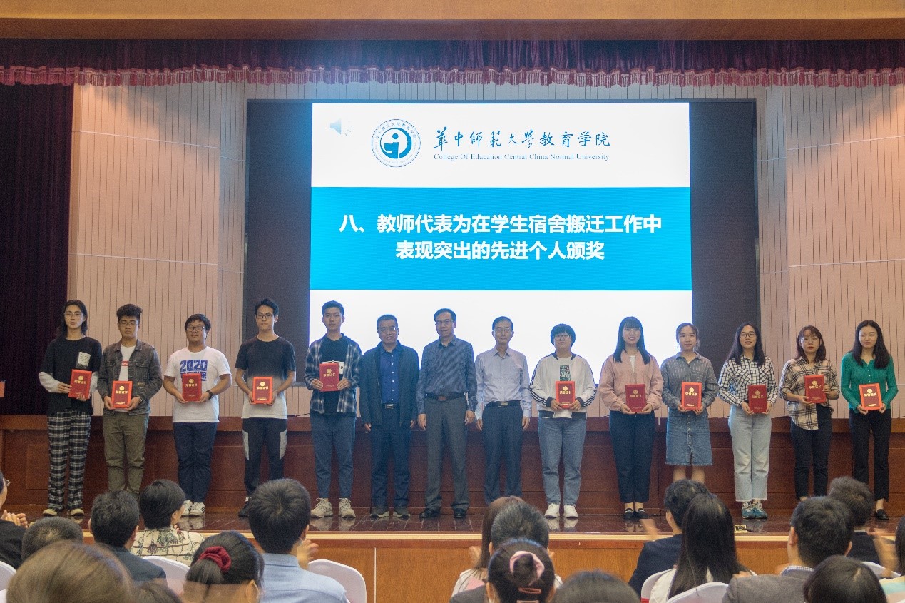教师代表为在宿舍搬迁工作中表现突出的学生先进个人颁奖