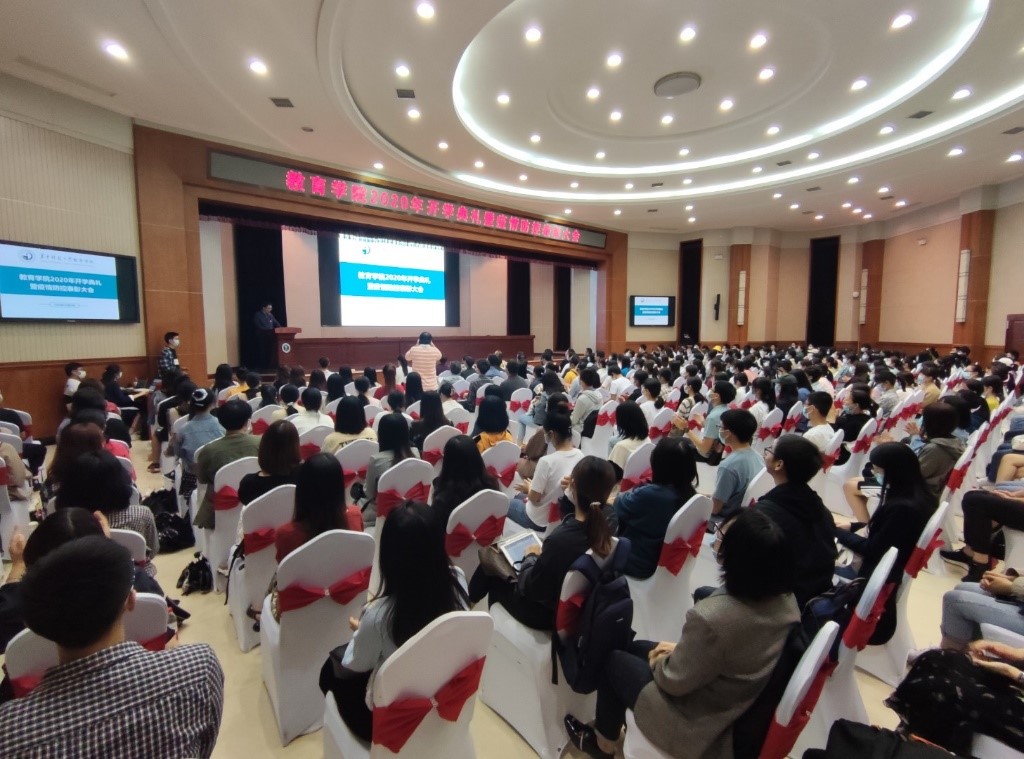 教育学院2020年开学典礼暨疫情防控表彰大会在激情彭拜的校歌声中圆满结束。