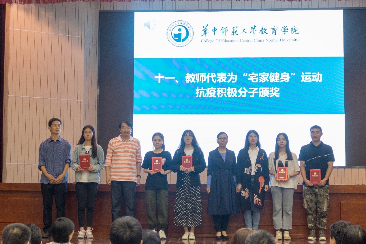 教师代表为“宅家健身”运动抗疫积极分子颁奖