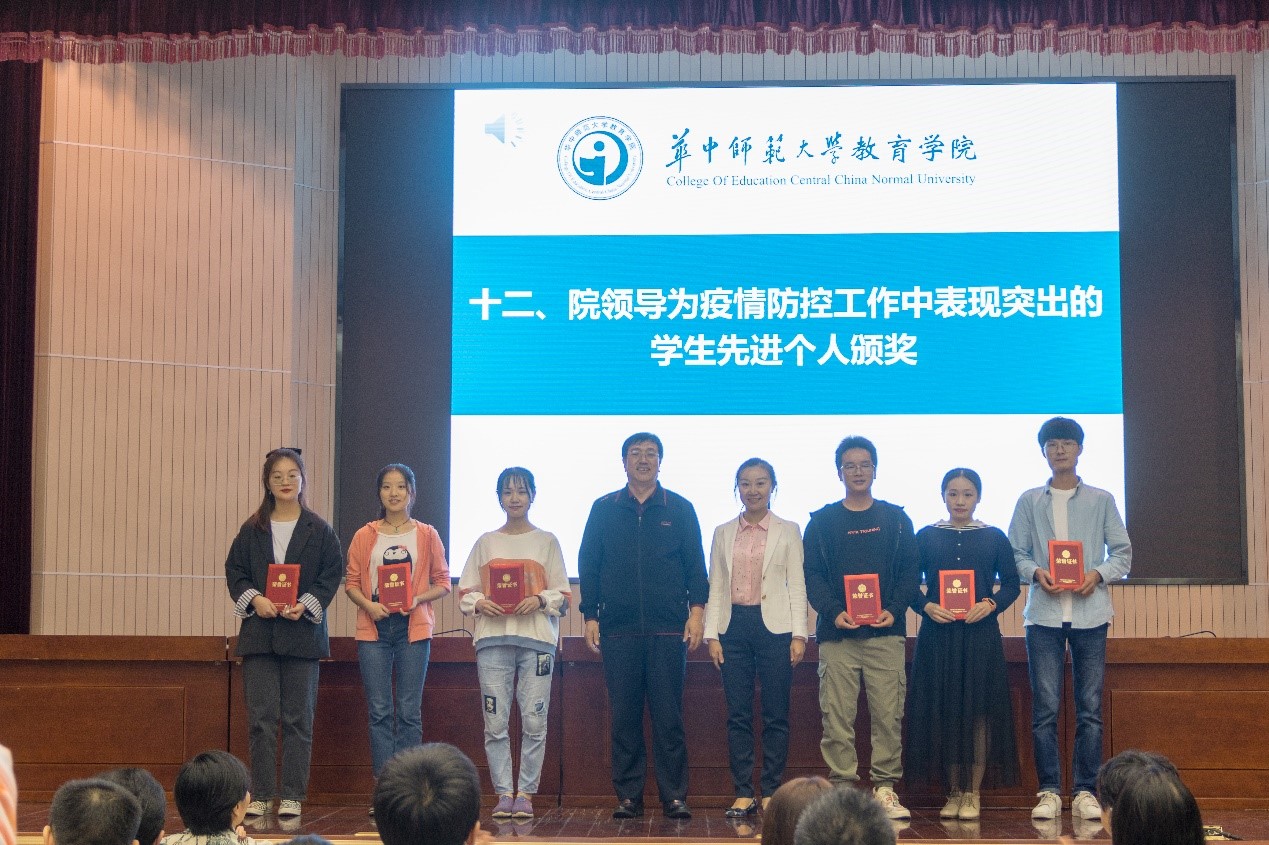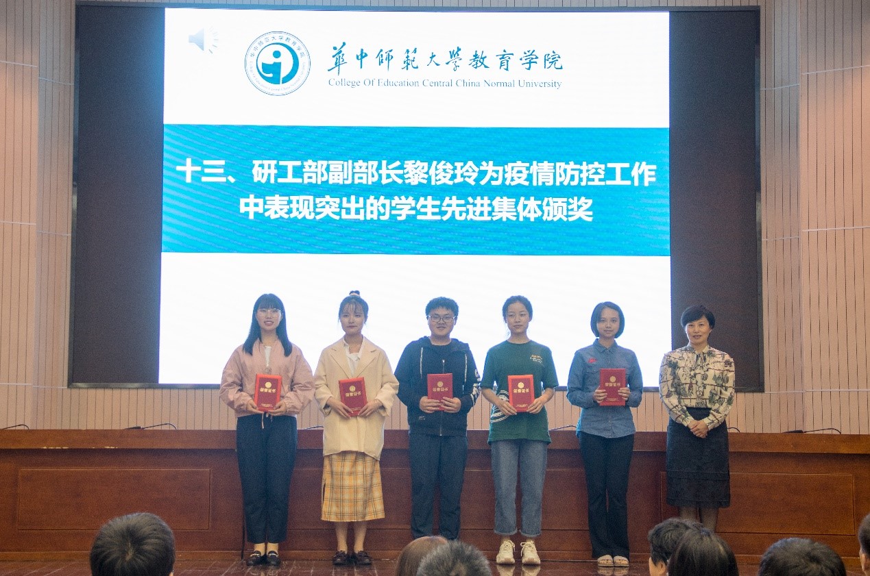 党委书记李玲、院长雷万鹏为在疫情防控和毕业生返校工作中表现突出的教工先进个人颁奖
