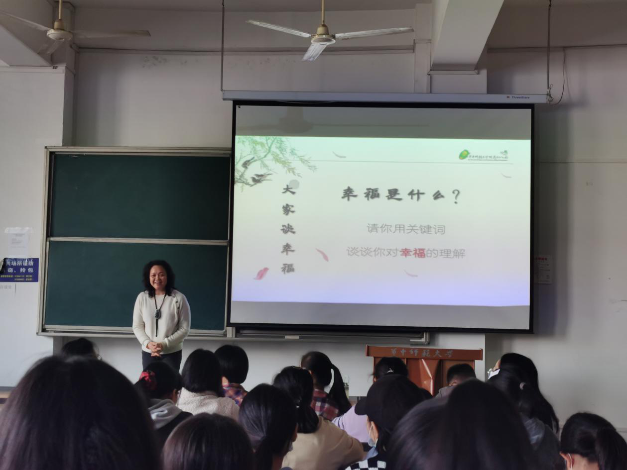 张国华园长以“幸福是什么”的问题为切入点,引出幸福的涵义和价值。首先,她以自身35年幸福的幼教工作经历感染着现场的每一位同学。工作35年来,职业角色从张阿姨到张老师的变化上充分体现了社会和家长对幼儿园教师的专业认同和专业信任,幼儿园从纯服务型的行业蜕变成目前具有学术高度的行业。其次,张园长分别就与儿童的共同成长、与同伴的互助成长、与家长的合作成长三个层面解读幼教人的幸福所在。张园长更是以鲜活的中班幼儿角色游戏案例,让学生体认游戏中蕴含的发展价值,小活动中蕴含着大学问。最后,张园长强调了目前国家政策对学前教育发展的大力支持,激励教育学院的学生热爱教育事业,在与儿童、同事、家长的共同成长中追寻幸福的教育和教育的幸福,并诚邀同学们一起做幸福的幼教人。