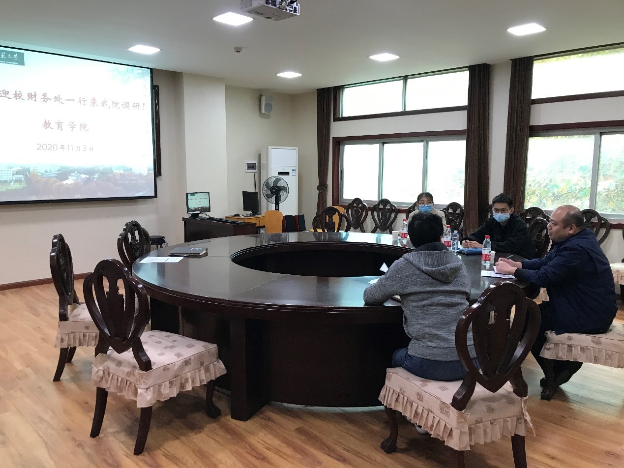 教育学院宣传中心讯(通讯员 覃娟)2020年11月3日下午,学校财务处副处长费克文一行来我院开展2021年绩效预算申报专题工作调研座谈会,我院党委书记李玲出席,院办主任覃娟参加。