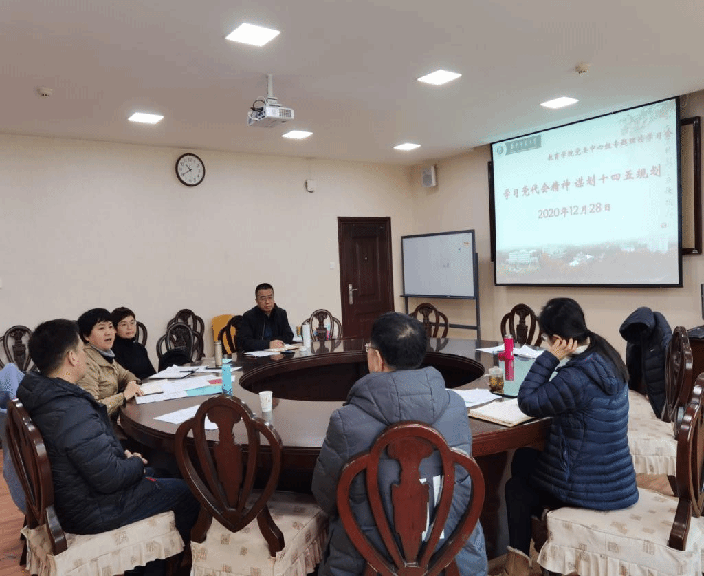 教育学院融媒体中心讯(通讯员 经湛 )12月28日,教育学院党委中心组在田家炳403室召开题为“学习党代会精神,谋划十四五规划”的会议,专题学习华中师范大学第十二次党代会精神。会议由党委书记李玲主持,全体中心组成员参加。