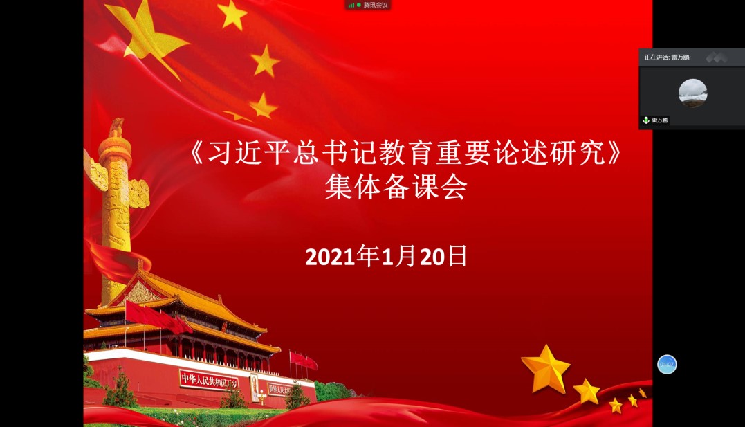 教育学院融媒体中心讯(通讯员 夏儒斐)《习近平总书记教育重要论述研究》被列入我校2020级本科师范生通识必修课程。为促进该课程团队建设和课程教学执行计划的落实,开出高质量的教师教育必修课,我院于2021年1月20日晚19:30线上召开了《习近平总书记教育重要论述研究》集体备课会。学院全体党政领导班子,9个专题授课团队,共53名授课教师参与了此次会议。