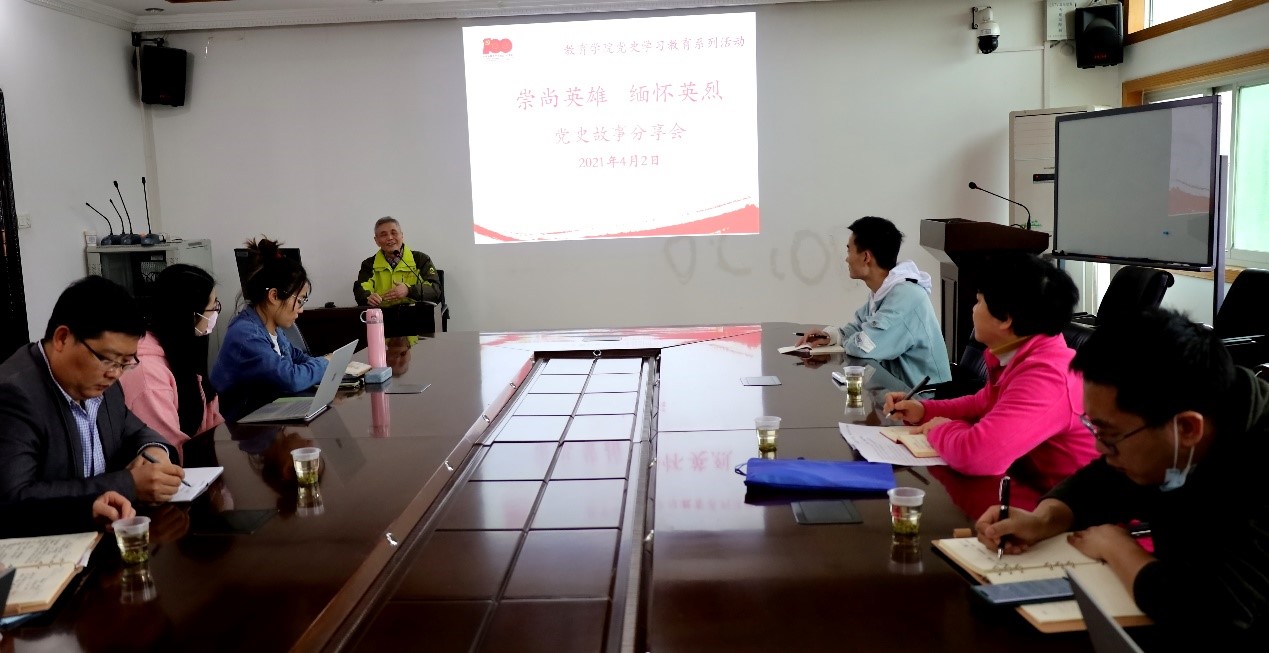教育学院融媒体中心讯(通讯员 覃娟 王健)4月2日下午,教育学院党委举办“崇尚英雄缅怀英烈”党史故事分享会,学院退休教师方彤教授讲述其父母的革命故事,院党委书记李玲主持,院班子成员、分党委委员、党支部书记及师生代表等参加活动。