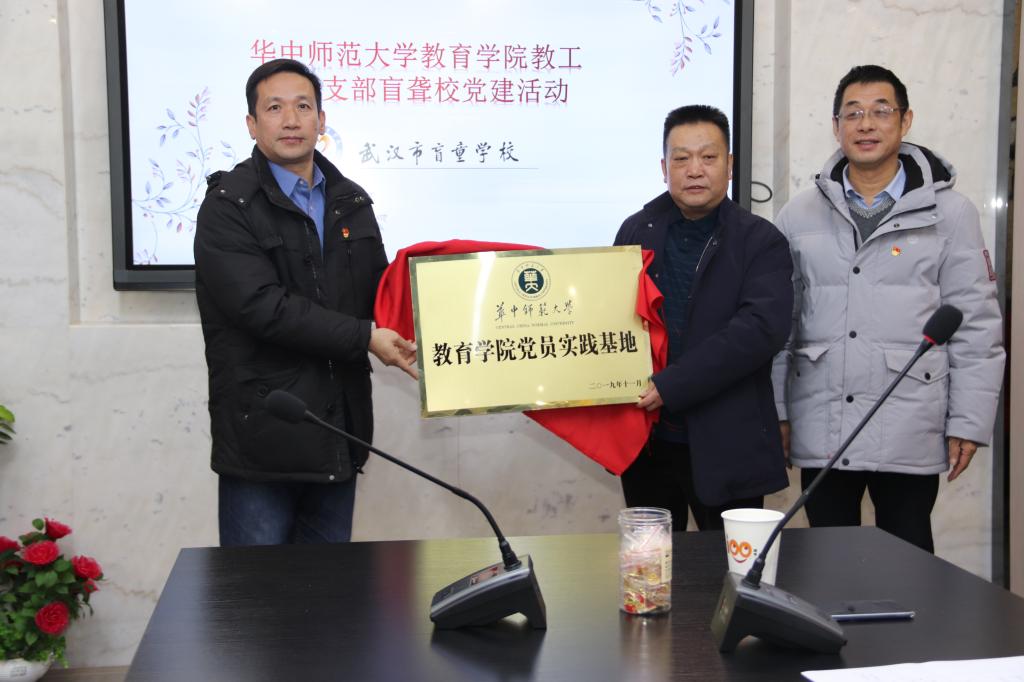 雷万鹏先后为武汉市盲童校学校、武汉市第二聋哑学校进行“教育学院党员实践基地”挂牌仪式。