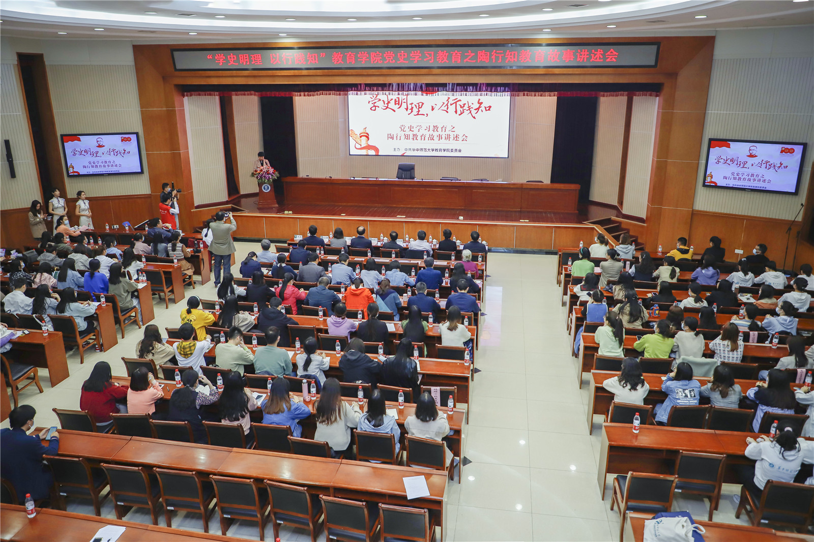 教育学院融媒体中心讯(记者 陈希昌 邹讯 张萌)在庆祝中国共产党成立100周年之际,为贯彻落实习近平总书记及党中央关于在全党开展党史学习教育的有关决策精神,教育学院于4月20日在科学会堂一楼报告厅隆重举行“学史明理以行践知”陶行知教育故事讲述会。校党委副书记查道林,党委组织部、宣传部、学生工作部相关负责人出席会议,教育学院党政班子全体成员、师生党员150余人参加会议,会议还通过线上方式直播,全国陶行知研究会会员、教育学院在校生及校友千余人线上同步观看。