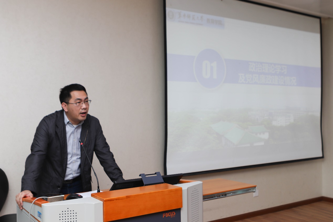 院长、党委副书记雷万鹏从政治学习、履职尽责、廉政自律和教学科研四个方面对工作情况进行了汇报。在政治学习方面,积极参加政治学习活动,自觉学习和遵守党章;在履职尽责方面,继续进行人才培养、持续开展科学研究、深度推进学科建设。同时,积极推动“学术抗疫”、“跨界合作”、“一对十”国际化合作取得显著发展、举办高水平学术会议和国际化高水平课程,最后对个人教学工作中存在的问题进行了剖析,并进一步提出了未来的努力方向。
