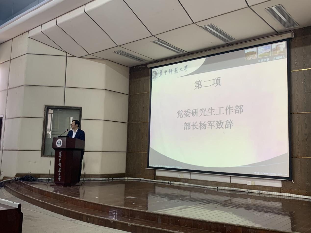 在典礼中,党委研究生工作部部长杨军在致辞中强调了开办研究生骨干培训班的重要意义,高度肯定了教育学院在研究生骨干培养方面所做出的努力和取得的成绩。杨军部长表示,研究生骨干培训是加强和改进我校研究生思想政治教育工作的重要一环,对发挥研究生骨干的示范和引领作用具有重要意义。今年恰逢建党一百周年,希望来自各单位的研究生骨干在工作中学党史、悟思想、做好服务、甘于奉献、实现自我,在学习中学有所思、学有所得、学有所获。借此机会,杨军部长衷心预祝本期培训班圆满成功。