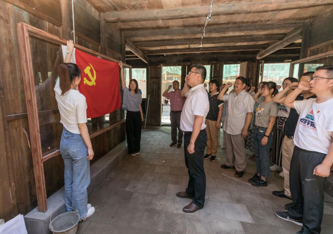 在红二红团总部旧址,党支部书记郑刚同志带领党支部党员重温了入党誓词。在这片充满热血的土地上,面对党旗,庄严宣誓,使得心灵再一次得到了净化,增强了共产党员的责任感和使命感,更加坚定了为中国特色社会主义共同理想和共产主义远大理想而奋斗的信念。
